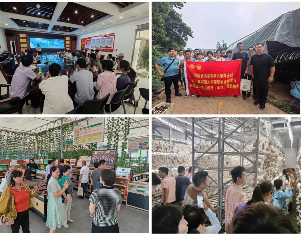 7月2日,学员前往许昌市世纪香生物科技有限公司和乐佳生活美学农场进行参观学习。世纪香公司董事长对学员们的到来表示欢迎,并向学员讲述了我国的食用菌现状并分享自身的创业经验。随后,学员们参观了食用菌种植基地,郜晓峰现场对食用菌种植进行指导并提出合理建议。