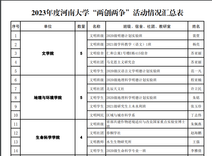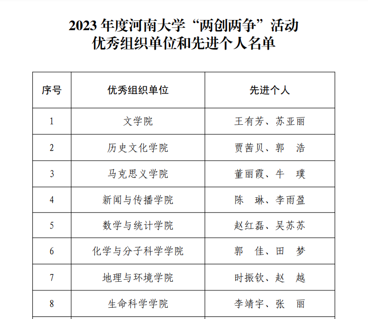 为深入学习贯彻党的二十大精神和习近平总书记关于弘扬雷锋精神的重要指示精神,不断提升广大师生思想觉悟、道德水准、文明素养和文明程度,根据《中共河南省委教育工作委员会河南省教育厅关于开展2023年度全省教育系统“两创两争”活动先进集体和先进个人推选工作的通知》(豫教工委〔2023〕36 号)精神,学校积极开展2023年度“两创两争”评选工作,对表现突出的先进集体和先进个人进行表彰,必赢242net官网在此次评选中荣获佳绩。