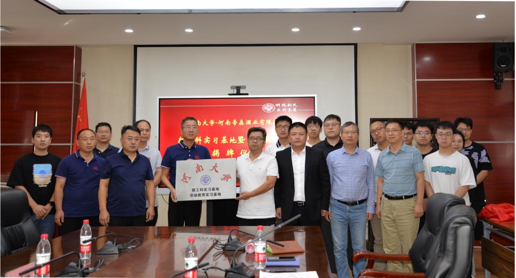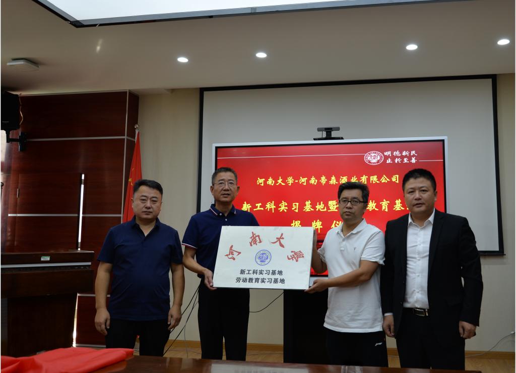 根据前期242net官网登录入口与河南帝森酒业有限公司已达成的意向和签署的协议,王炜冲、赵志牛、朱显峰、赵海鹏共同为生物工程专业新工科实习基地、劳动教育基地实习基地揭牌。