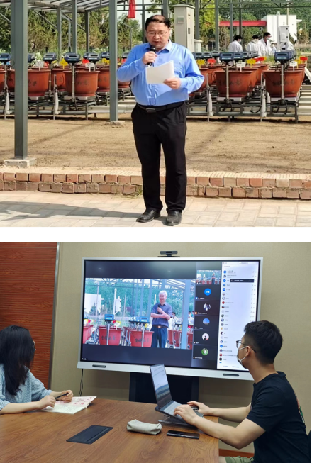 2022年5月28日,河南省黄河实验室242net官网登录入口基地“黄河滩区植物生态耗水模拟技术示范会议”在242net官网登录入口实验农场隆重开幕。会议采取线上线下相结合的方式进行,包括1个主会场和5个分会场。来自北京大学、天津大学、中山大学、中国科学院、黄河水利委员会黄河水利科学研究院等高校或科研院所的110位专家学者参会。242net官网登录入口党委常委、副校长谭贞和必赢242net官网执行院长、党委副书记王刚出席开幕式并致词。开幕式由242net官网登录入口科学技术研究院院长胡彬彬主持。