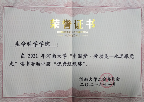 学院工会积极组织,教师积极参与。在近期校工会对2021年开展的“中国梦•劳动美—永远跟党走”读书活动的表彰中,我院喜获佳绩!学院获“优秀组织奖”,李志芳老师《自律的人儿最可爱》一文获家书作品比赛三等奖,祁静老师《永不落幕的爱》一文获家书作品比赛三等奖,教师子女边耕芸《读<丰碑>有感》一文获亲子阅读教职工子女作文大赛小学高年级组三等奖。