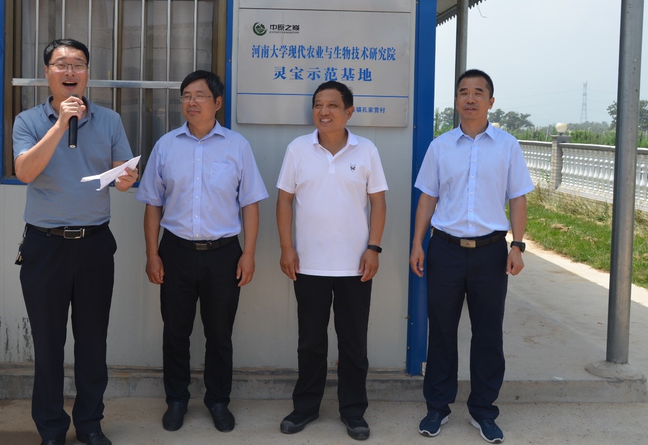 赵东保、王道杰、李璞和任索祥共同为灵宝示范基地揭牌,拉开了242net官网登录入口现代农业与生物技术研究院相关成果推广与示范的序幕。
