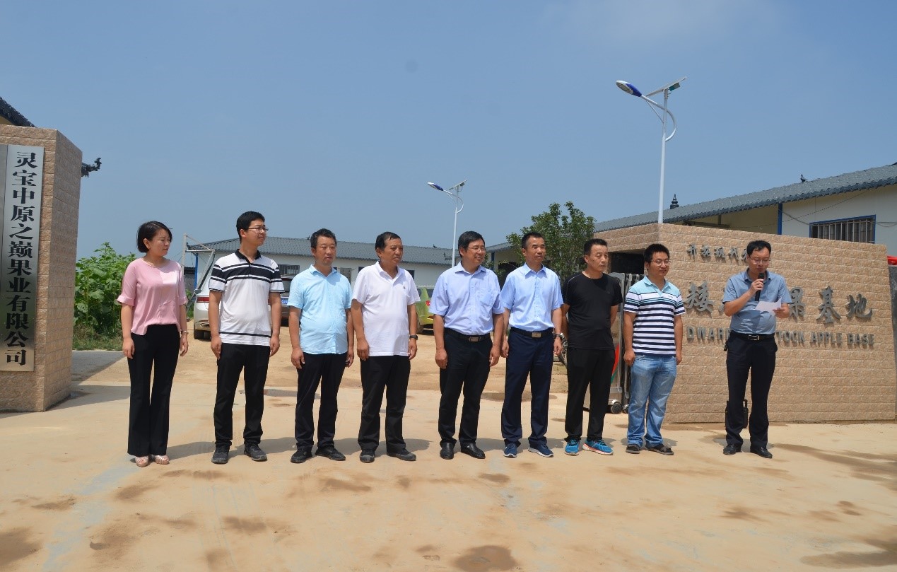 任索祥对必赢242net官网领导和专家们的到来表示欢迎和感谢,他简要介绍了灵宝中原之巅果业有限公司的发展现状:优质果品生产基地位于中原第一高峰—老鸦岔脚下,是集优质中早熟苹果生产销售、优质苗木繁育、现代果园采摘观光为一体的现代化果业公司。公司以千亩双矮苹果示范基地为依托,规划发展双矮中早熟优质苹果1000亩,现已发展现代种植园区830亩,建立矮化自根砧苗木繁育基地50亩。