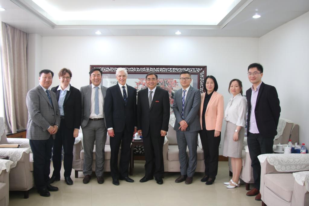 宋纯鹏校长首先在校长办公室会见了专程来访的麦考瑞大学代表团:科研副校长Sakkie Pretorius教授、医学与健康科学学院科研副院长Roger Chung教授、高等学位HDR伙伴关系和奖学金办公室副主任Kate Roth女士。宋校长对Sakkie Pretorius副校长领衔的麦考瑞代表团的到来表示热烈欢迎,并对两校前期的联合创新中心筹备工作表示充分肯定,希望双方以联合创新中心成立为新的契机,在生物学、农业、医学等多个相关领域加强对话,开展更深度的合作。