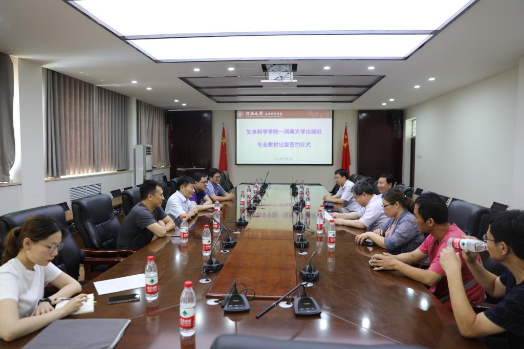 苗雨晨指出,教材建设是必赢“双一流”建设的重要构建部分,教材的质量直接体现着高等教育和科学研究的发展水平,也直接影响本科教学的质量。专业教师对于如何将自己丰富的素材形成教材还需要多向出版社学习,希望河大出版社能够在我院未来的文化传播和文化传承方面多做指导。袁凯强表示,教材是教师和学生之间沟通的桥梁,希望河大出版社能够为学院教材建设贡献力量,做好服务。同时对如何做好系列教材建设、构建生科院一流教材品牌建设提出了自己的构思和想法。最后表示,希望生科院和河大出版社共同携起手来,为学院专业教材建设和学校“双一流”学科建设做好做强保驾护航。